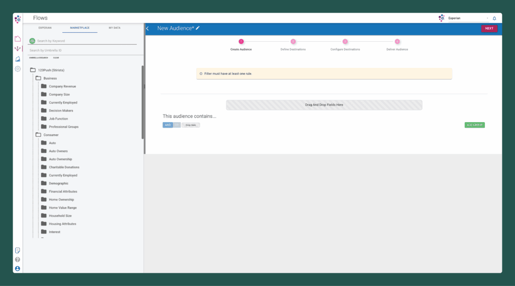 The core benefit of this partnership for Experian Marketplace users is the ability to leverage Stirista’s 123Push™ taxonomy. This includes our industry-leading, validated 1st and 3rd-party syndicated audiences spanning all data verticals.